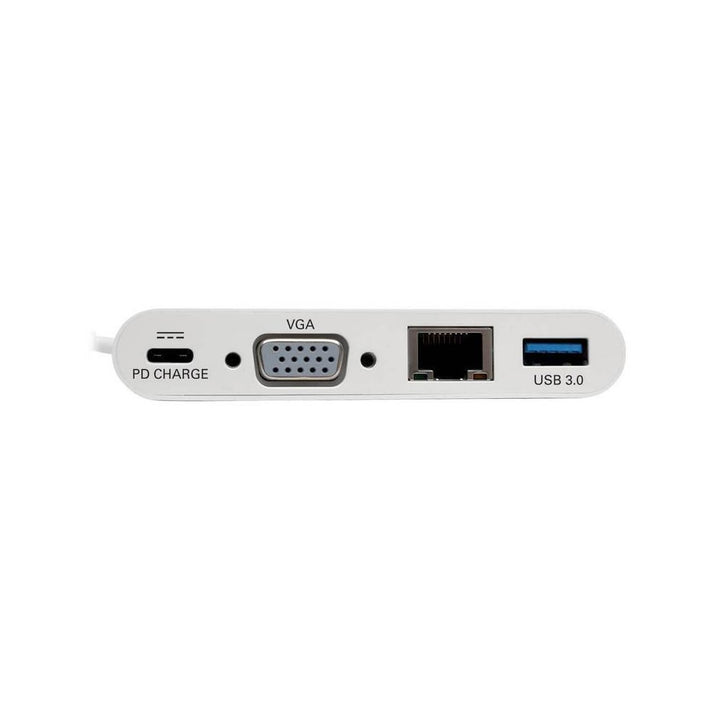 - NOMBRE: ADAPTADOR Multipuerto USB-C, VGA, Puerto USB-A, GbE, Carga PD, Blanco