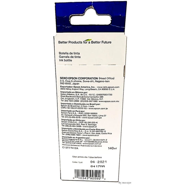 Hay un error en la información proporcionada. La referencia Botella Epson T774120-AL y la mención a la serie EPSON 673 no coinciden. Parece que hay un malentendido o una confusión en los detalles del producto. Si tienes información adicional o si hay alguna corrección que deba realizarse, estaré encantado de ayudarte aclarando la información sobre la botella de tinta que mencionaste.