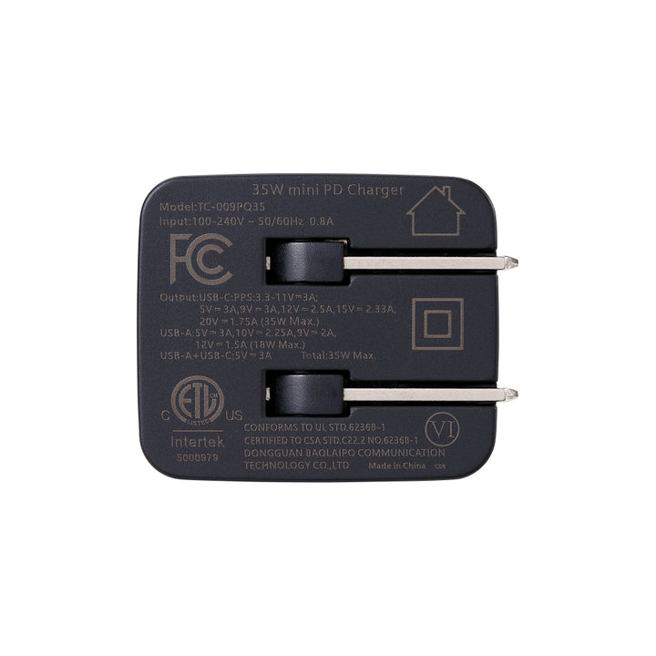 CARGADOR 35W - 1PUERTOS USB TYPE C- 1 PUERTO USB TYPE A + NEGRO
